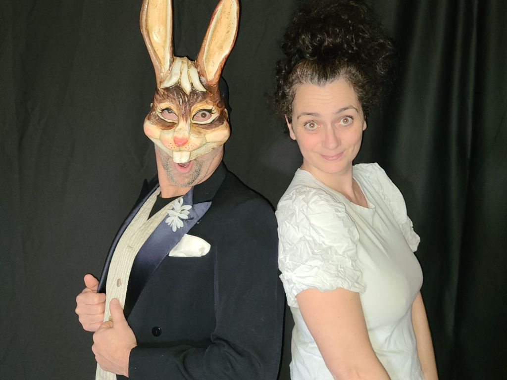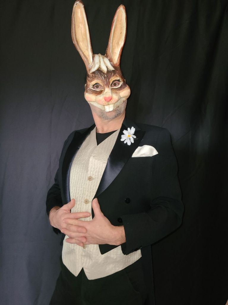un lapin blanc avec un gros réveil qui parle et qui ne cesse de